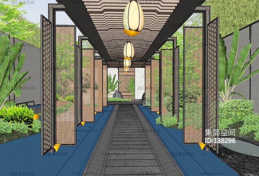 新中式连廊SU模型 su草图模型下载 [模型ID:138296]