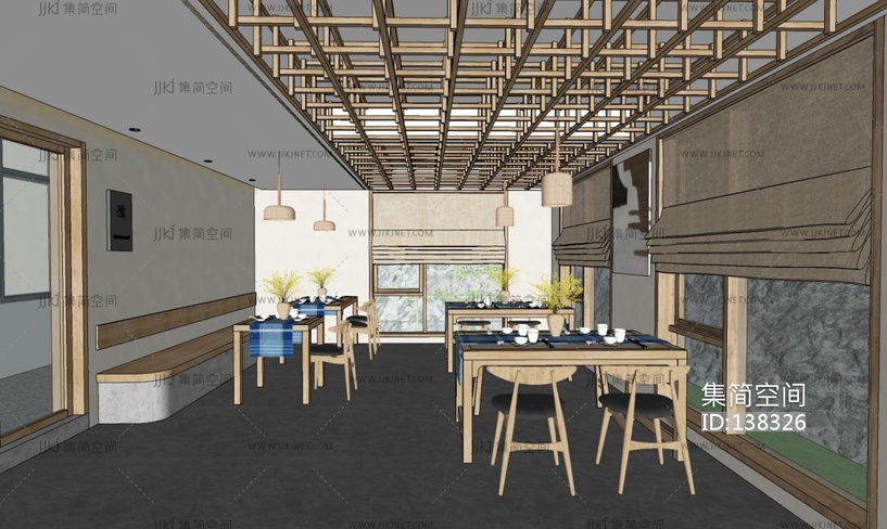 新中式中餐厅SU模型 su草图模型下载 [模型ID:138326]