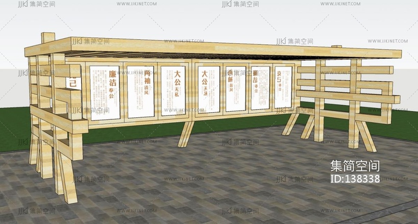 新中式廊架SU模型 su草图模型下载 [模型ID:138338]