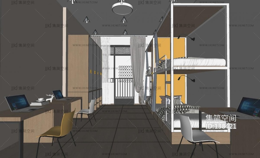 现代宿舍,学生宿舍SU模型su草图模型下载