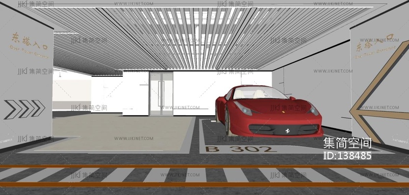 现代地下室停车场SU模型 su草图模型下载 [模型ID:138485]