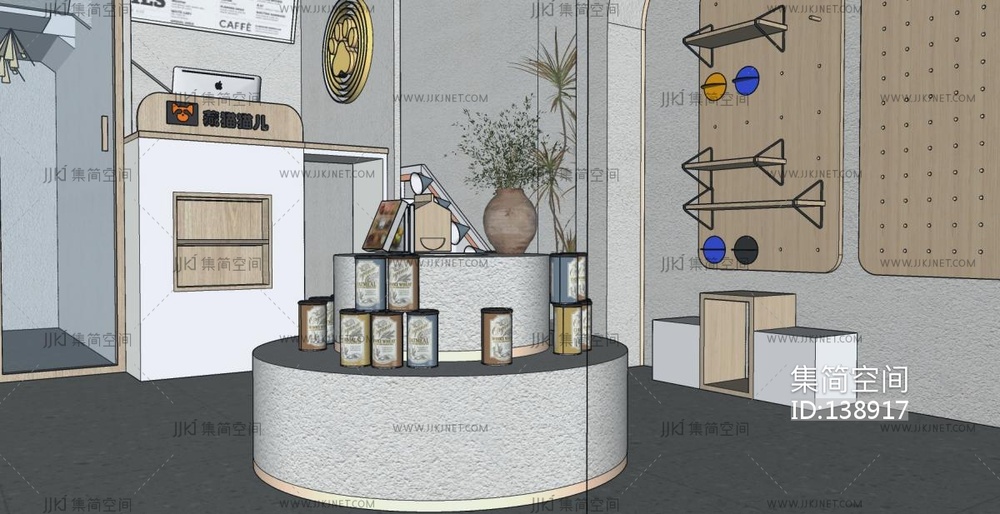 现代简约宠物店猫咖SU模型 su草图模型下载 [模型ID:138917]