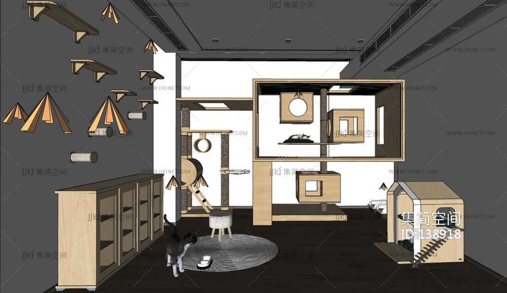 现代猫房猫咪游戏区SU模型 su草图模型下载 [模型ID:138918]