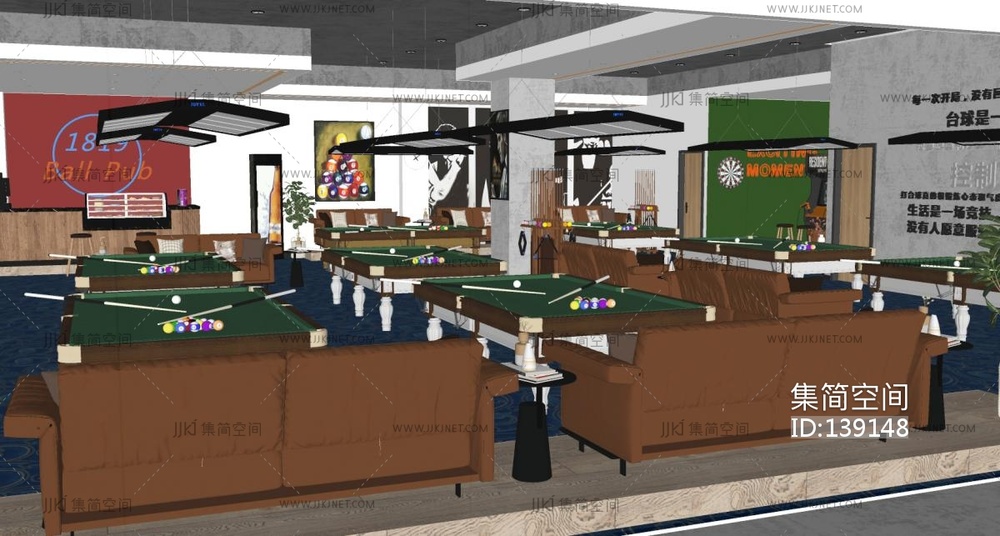 现代台球室SU模型 su草图模型下载 [模型ID:139148]