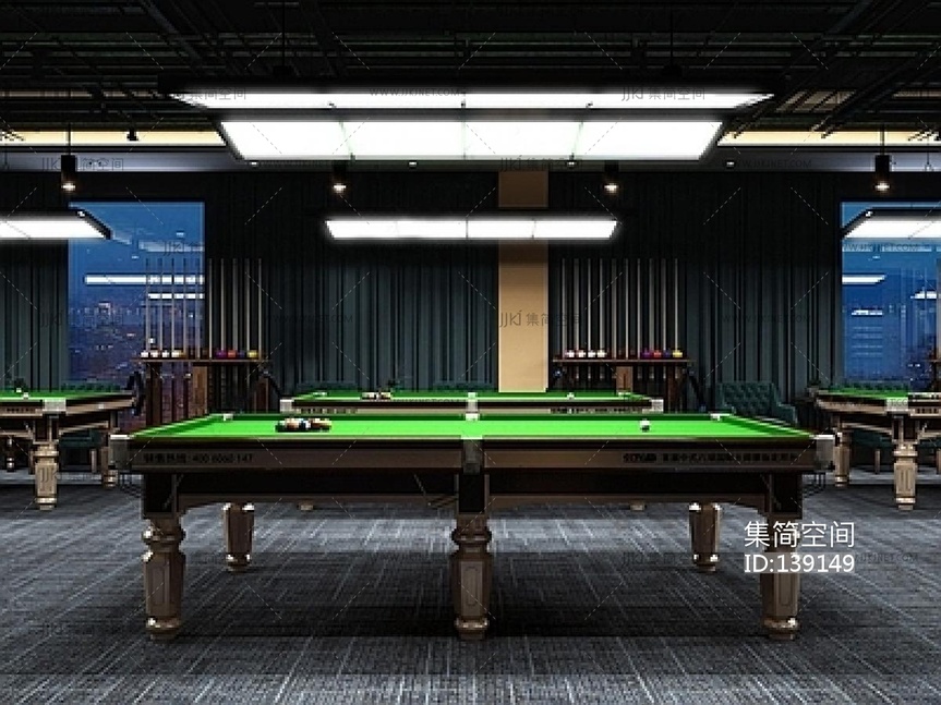 现代台球室SU模型 su草图模型下载 [模型ID:139149]