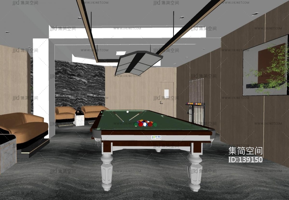 现代台球室SU模型 su草图模型下载 [模型ID:139150]
