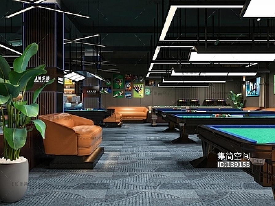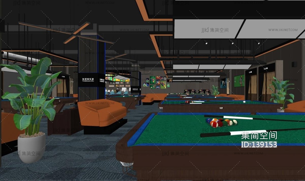 现代台球室SU模型 su草图模型下载 [模型ID:139153]