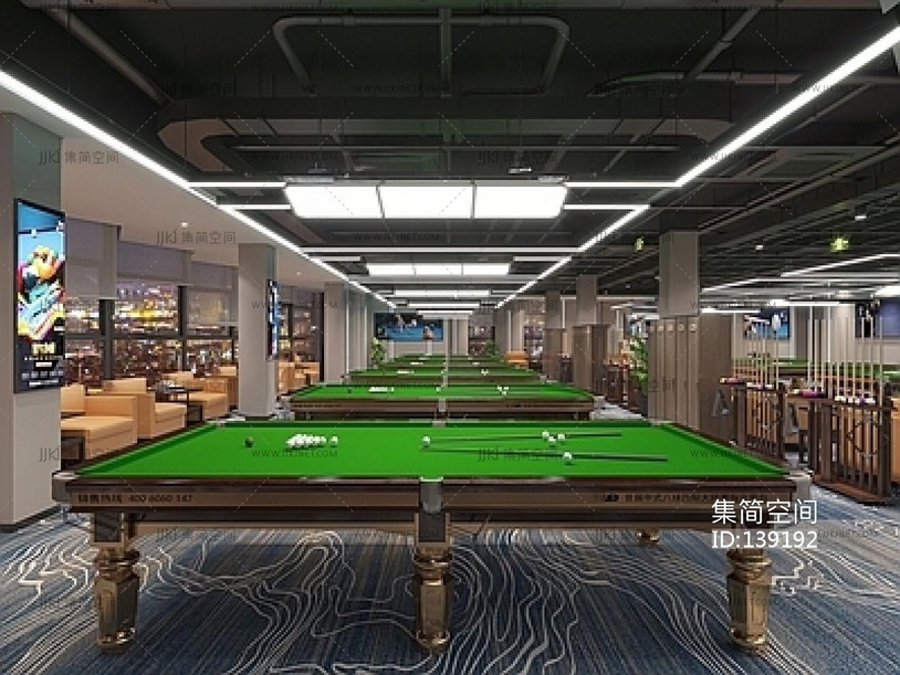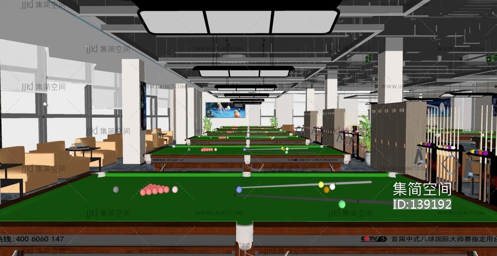 现代台球室,台球厅SU模型 su草图模型下载 [模型ID:139192]