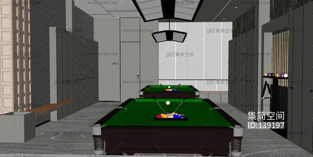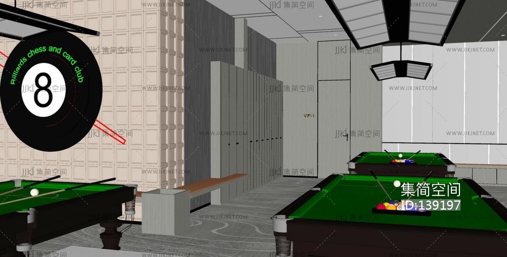 现代台球厅SU模型 su草图模型下载 [模型ID:139197]