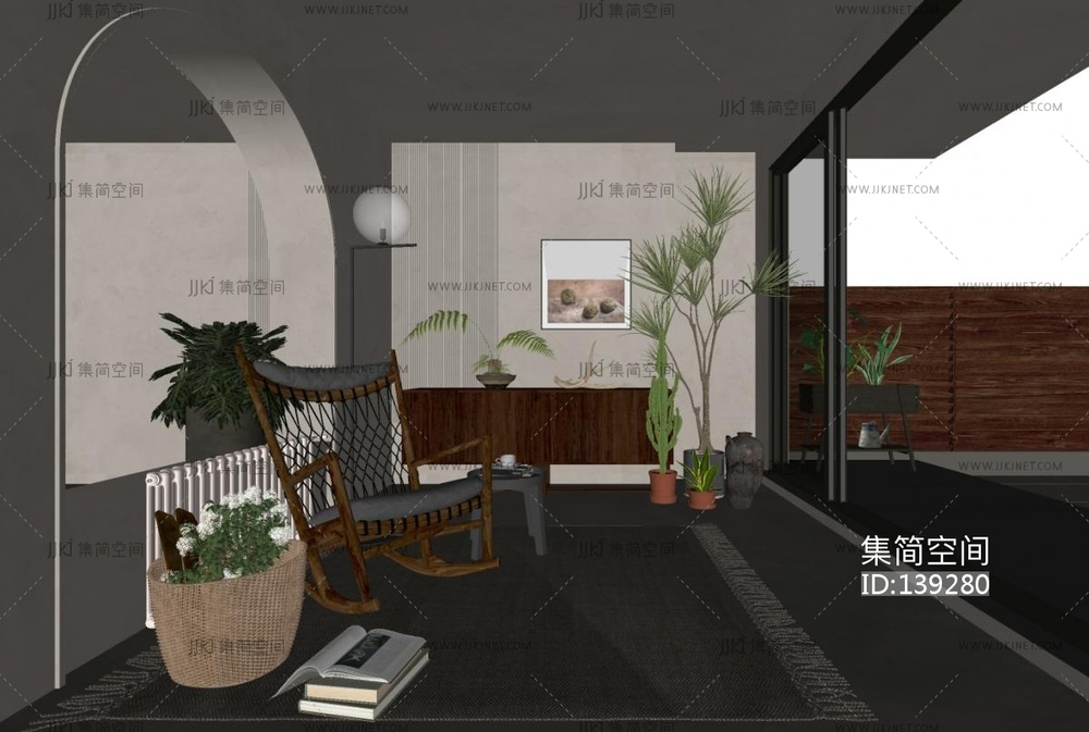 侘寂风阳台SU模型 su草图模型下载 [模型ID:139280]