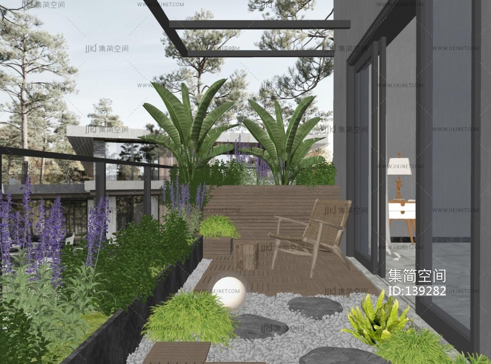 现代暗黑风别墅花园庭院SU模型su草图模型下载
