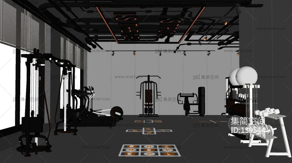 现代健身房SU模型 su草图模型下载 [模型ID:139544]