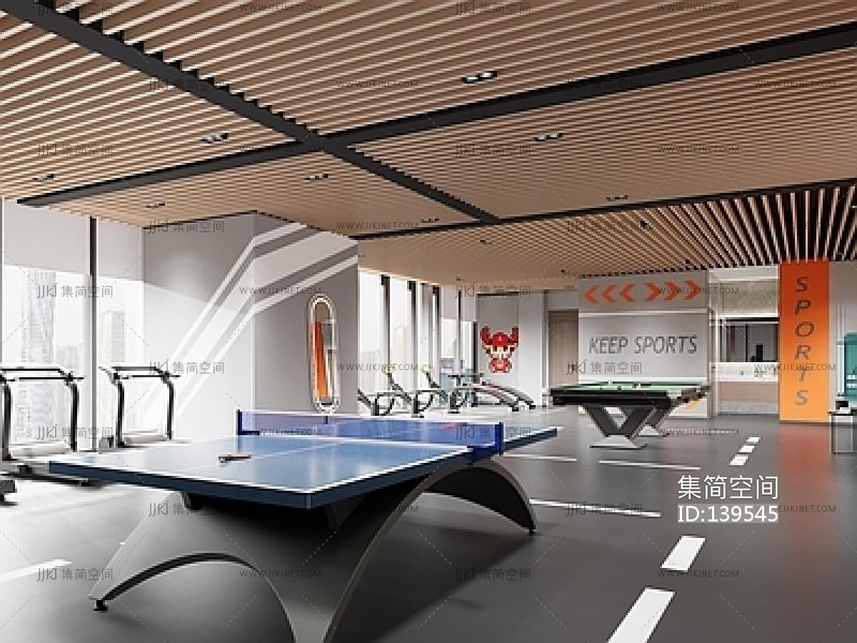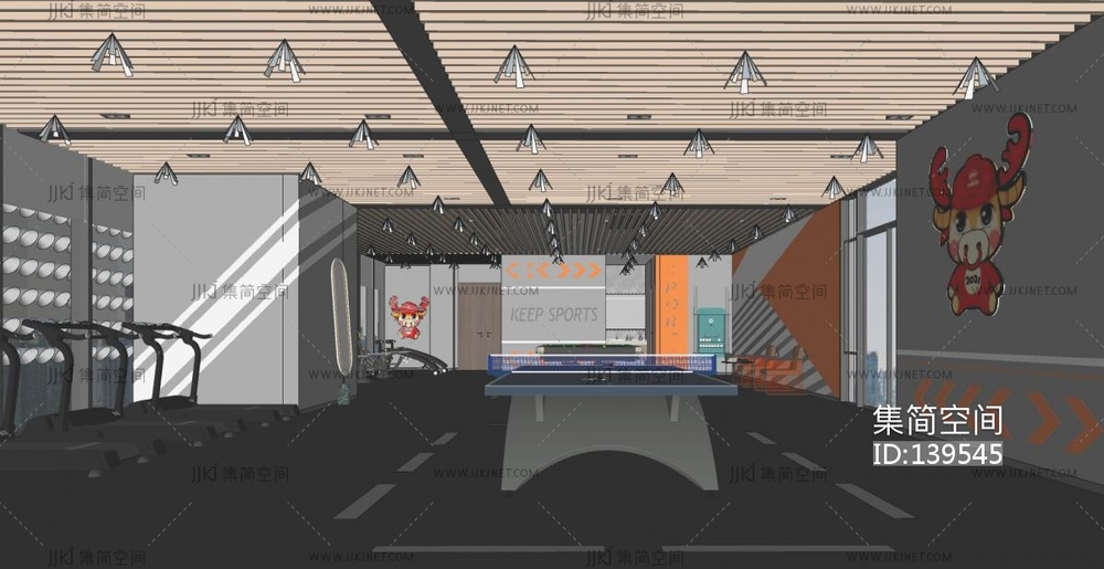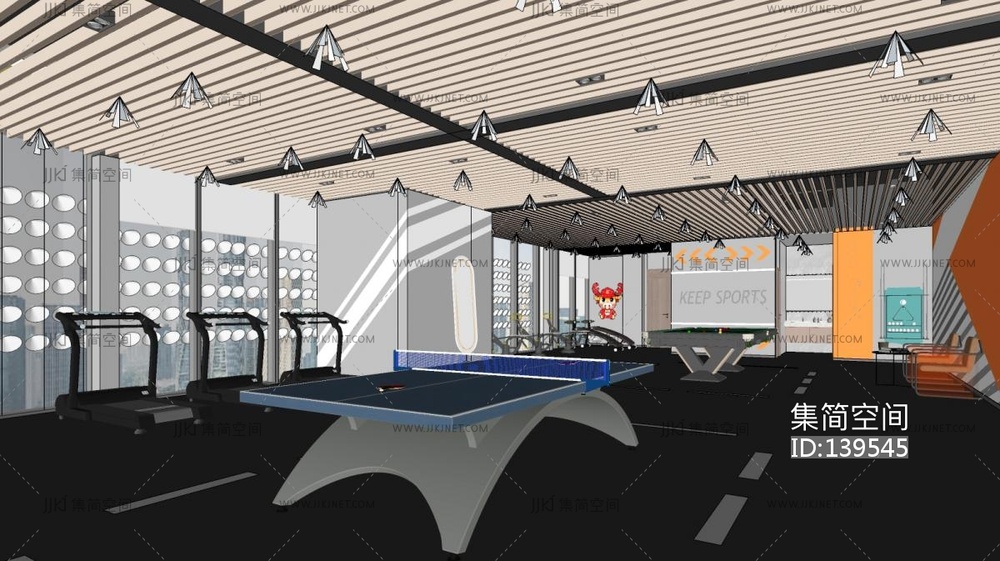 现代员工健身房SU模型 su草图模型下载 [模型ID:139545]