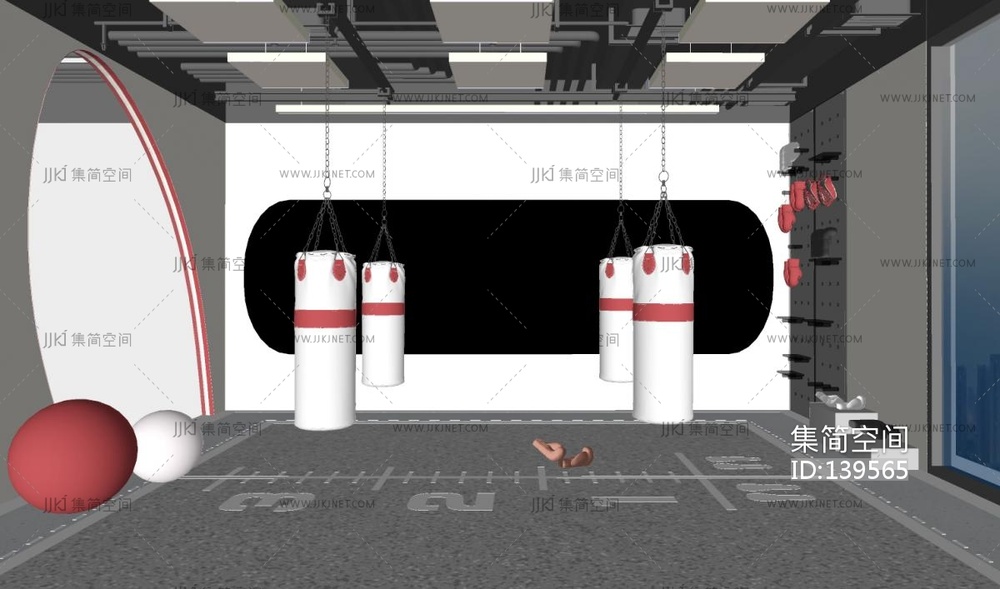 现代拳击房,健身房SU模型 su草图模型下载 [模型ID:139565]