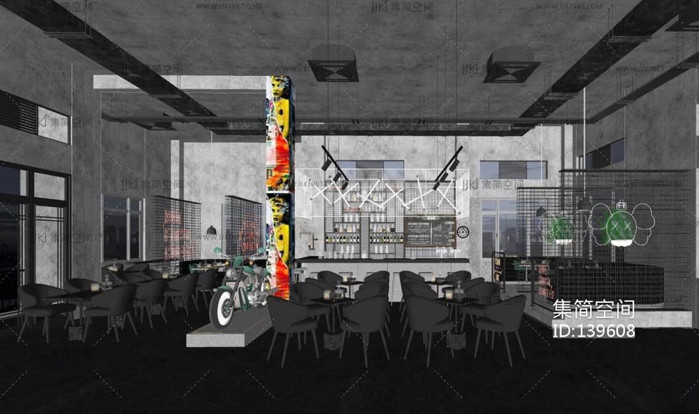 工业风酒吧SU模型 su草图模型下载 [模型ID:139608]