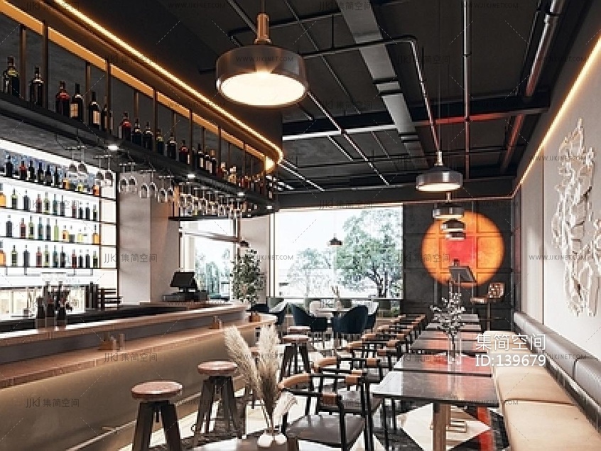 工业风酒吧SU模型 su草图模型下载 [模型ID:139679]