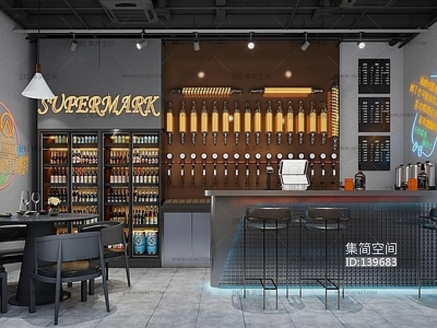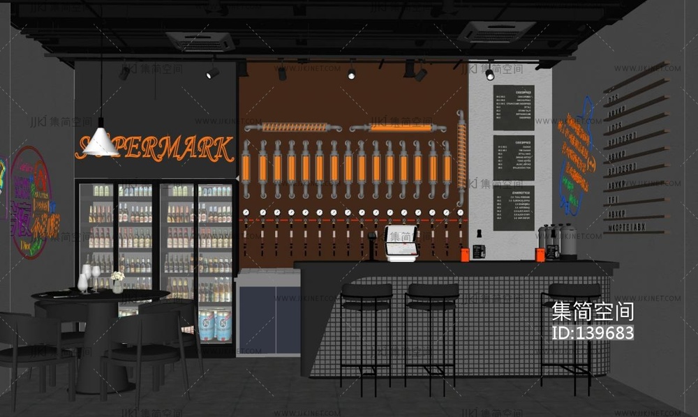工业风酒吧SU模型 su草图模型下载 [模型ID:139683]