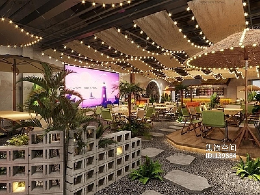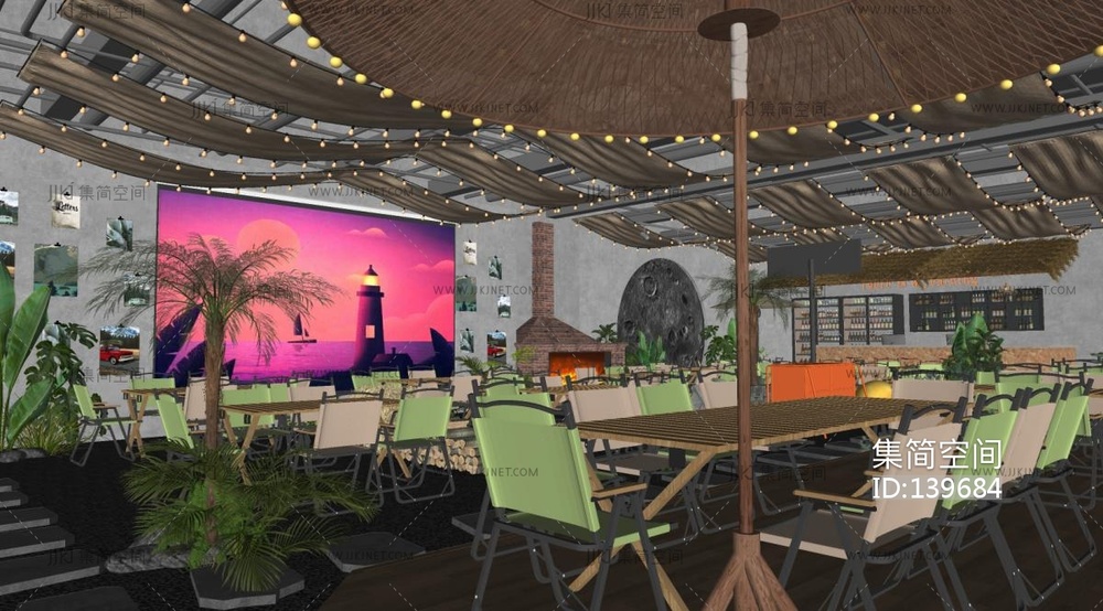 现代自然露营风酒吧SU模型 su草图模型下载 [模型ID:139684]