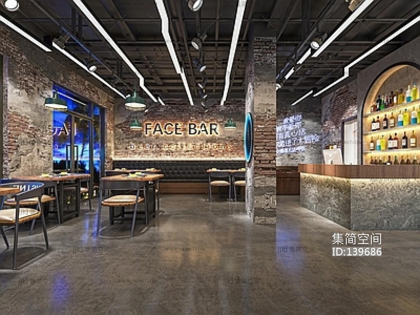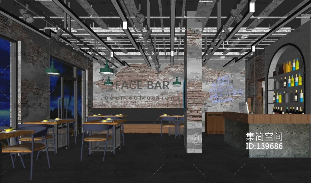 工业风酒吧SU模型 su草图模型下载 [模型ID:139686]