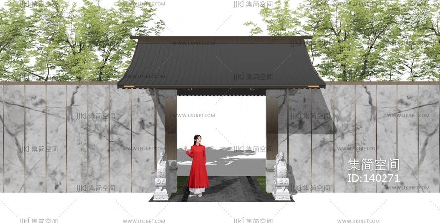 禅意新中式大门 su草图模型下载 [模型ID:140271]