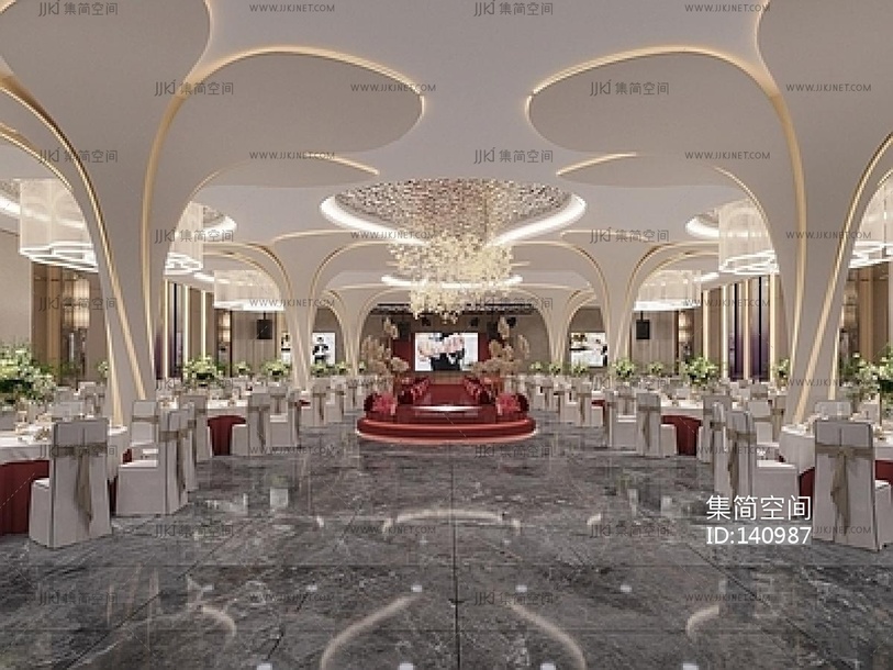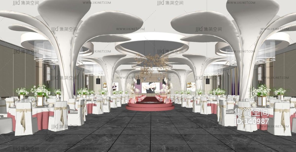 现代酒店宴会厅SU模型 su草图模型下载 [模型ID:140987]