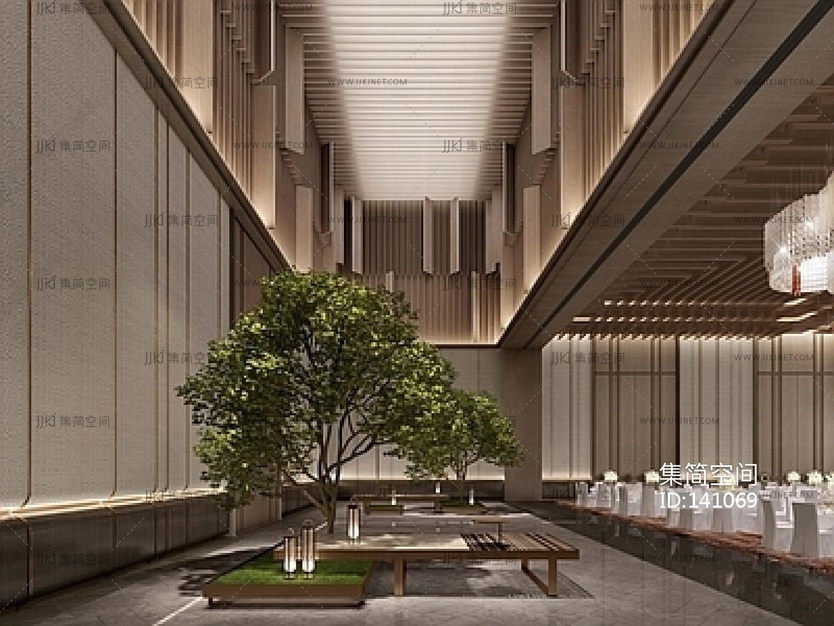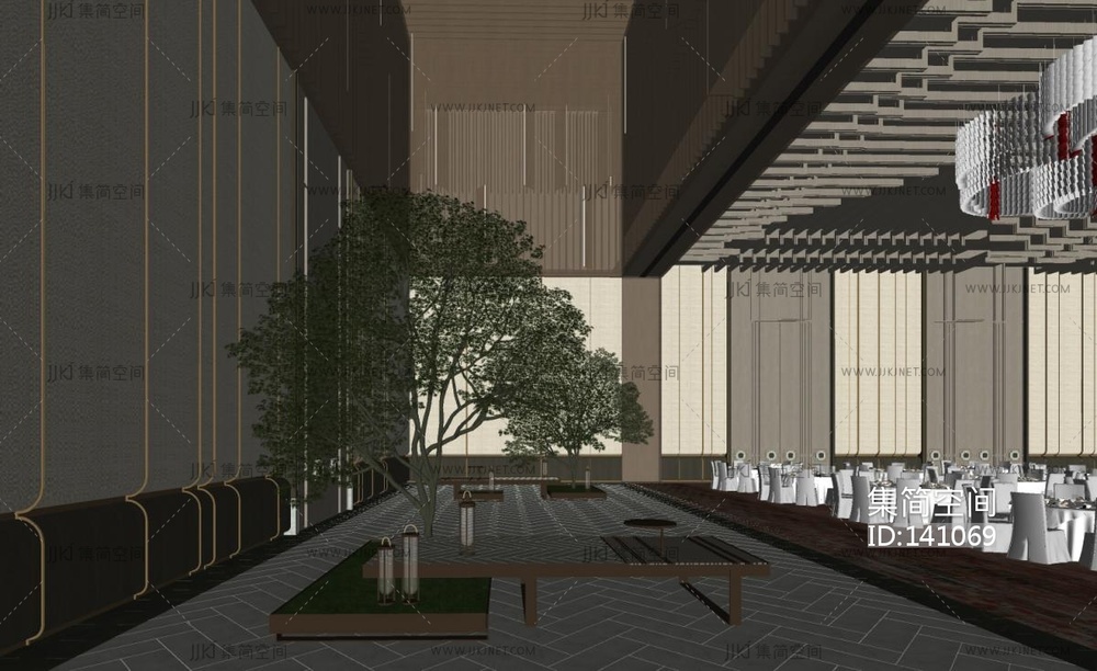 新中式酒店宴会厅SU模型su草图模型下载