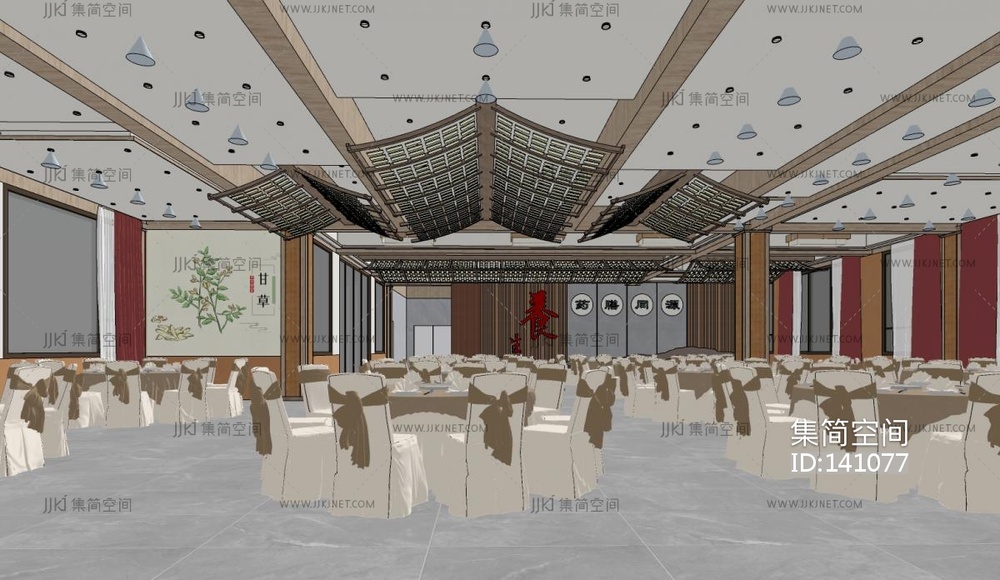中式酒店宴会厅SU模型 su草图模型下载 [模型ID:141077]