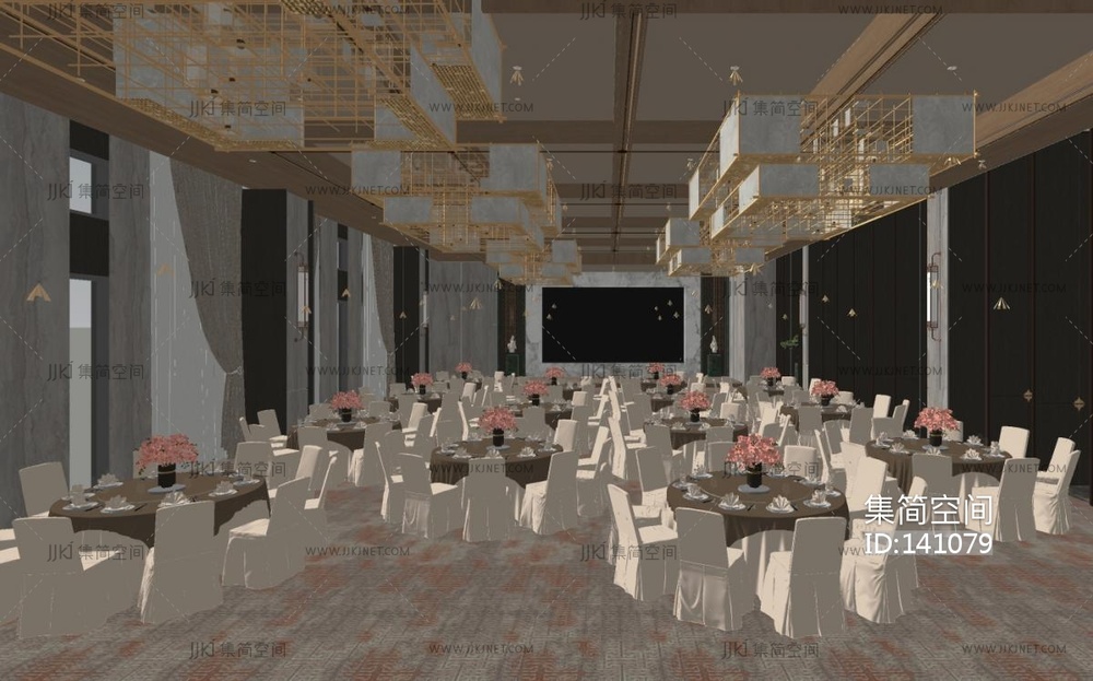 现代酒店宴会厅SU模型 su草图模型下载 [模型ID:141079]