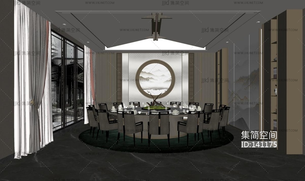 新中式餐厅包厢 su草图模型下载 [模型ID:141175]