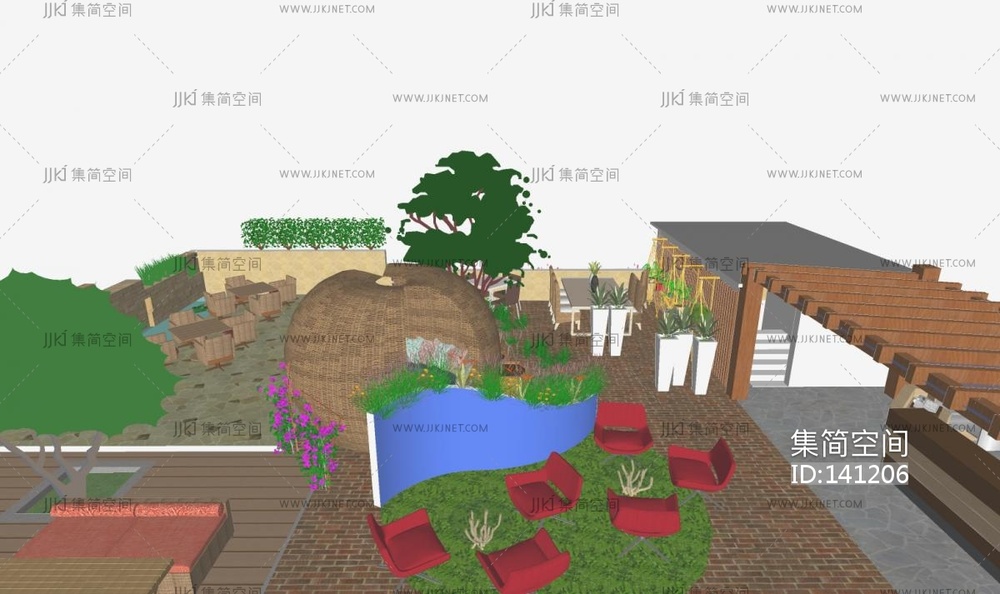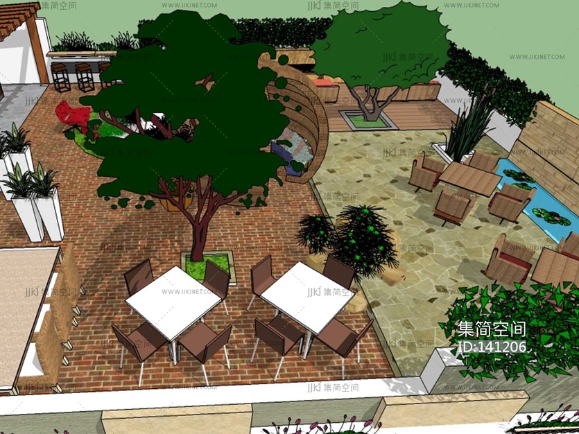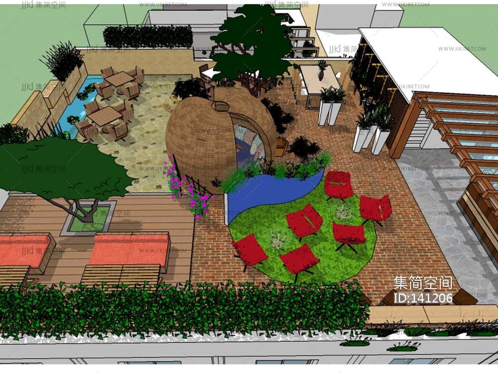 现代 屋顶花园 su草图模型下载