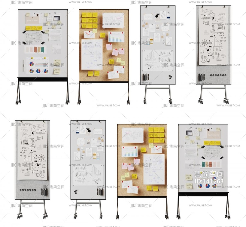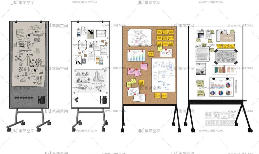 现代办公用品白板 墙饰 su草图模型下载 [模型ID:141263]