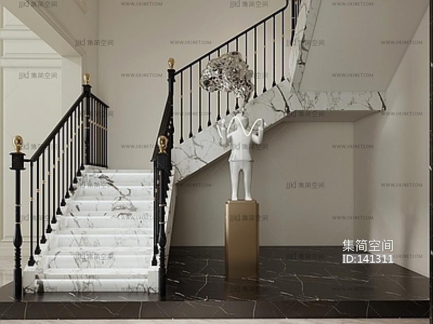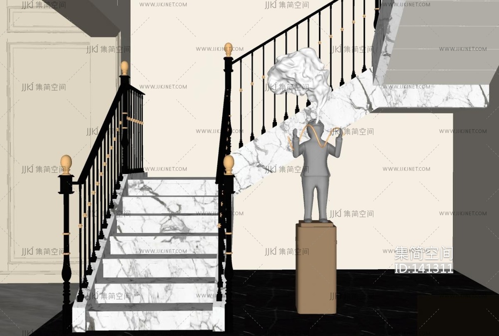 现代铁艺扶手楼梯SU模型 su草图模型下载 [模型ID:141311]