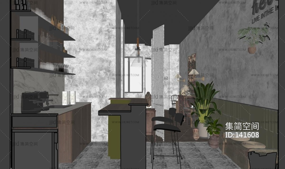 -现代中古风咖啡厅_ su草图模型下载 [模型ID:141608]