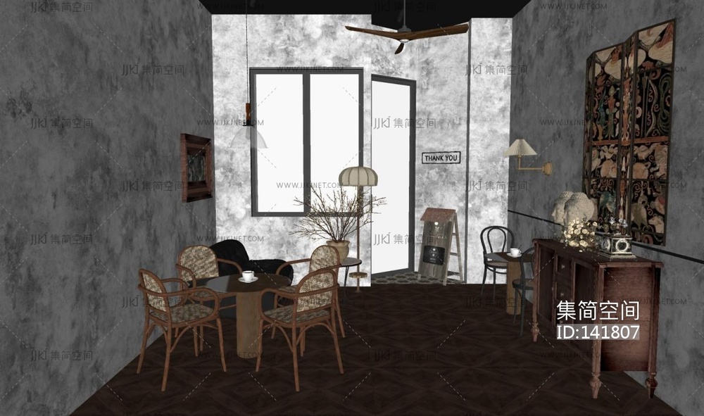 -现代中古风咖啡厅 su草图模型下载 [模型ID:141807]
