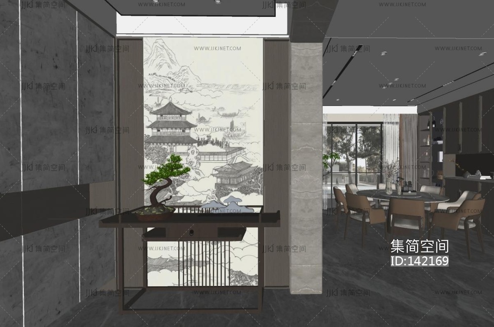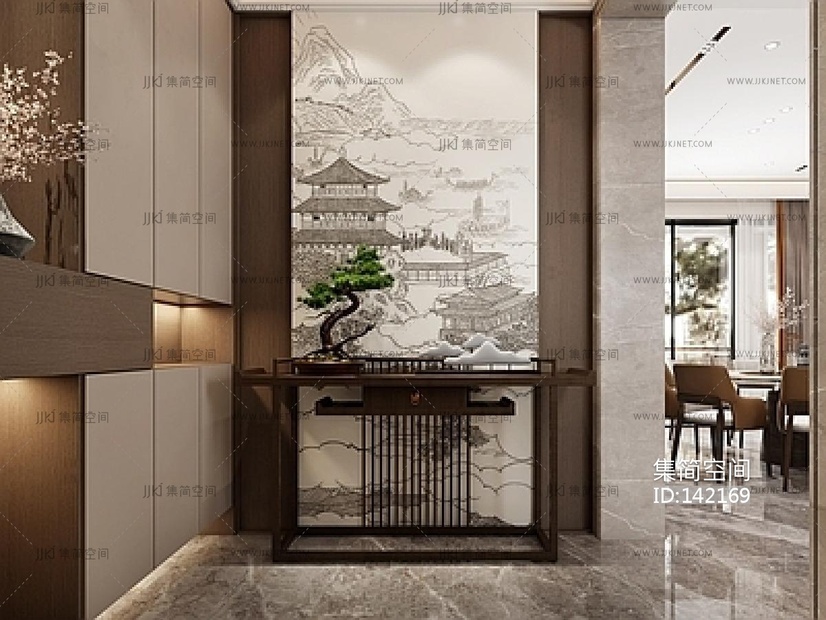 新中式装饰性玄关SU模型 su草图模型下载 [模型ID:142169]
