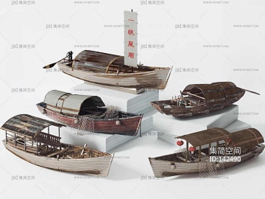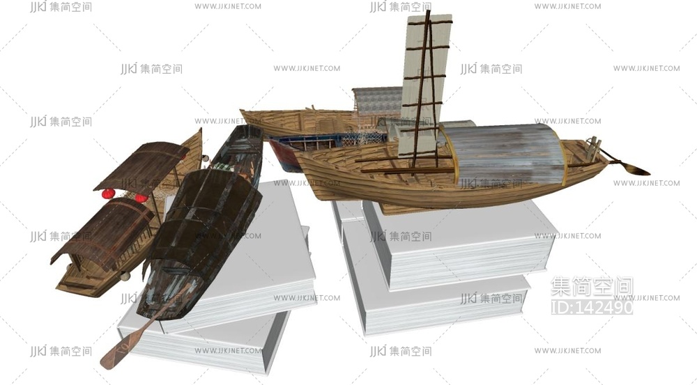 中式古建木船 su草图模型下载 [模型ID:142490]