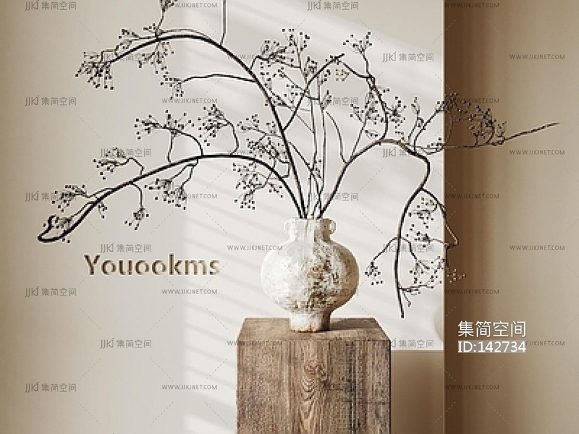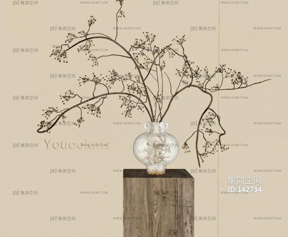 侘寂风花瓶花艺SU模型 su草图模型下载 [模型ID:142734]