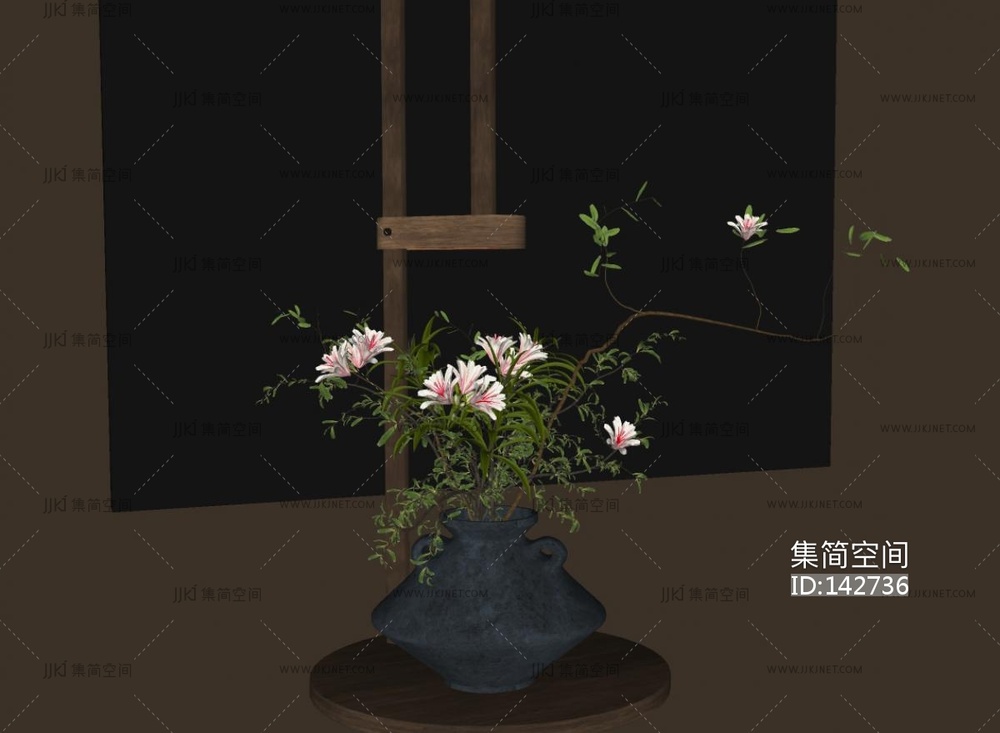 侘寂中古风花瓶花艺SU模型 su草图模型下载 [模型ID:142736]