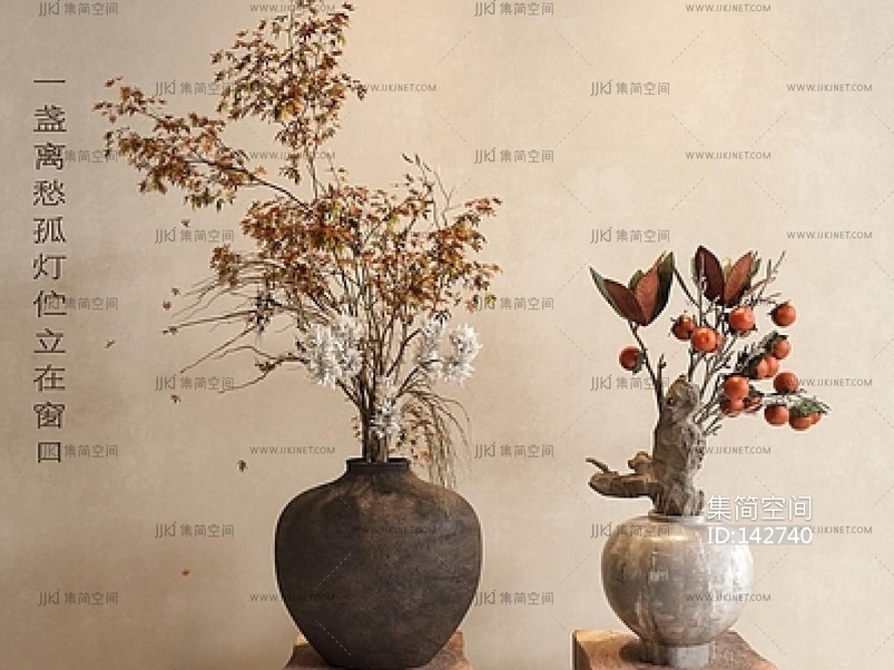 侘寂风干枝花瓶花艺摆件SU模型 su草图模型下载 [模型ID:142740]