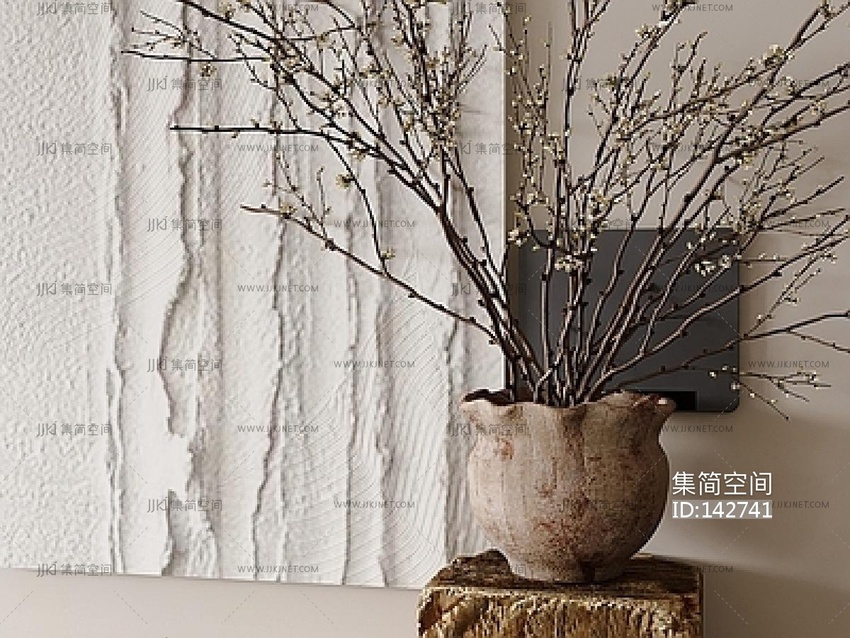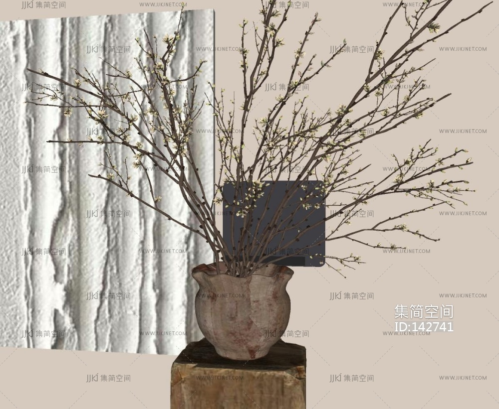 新中式中古花艺,陶罐花瓶SU模型su草图模型下载