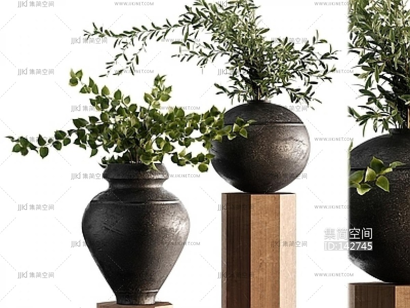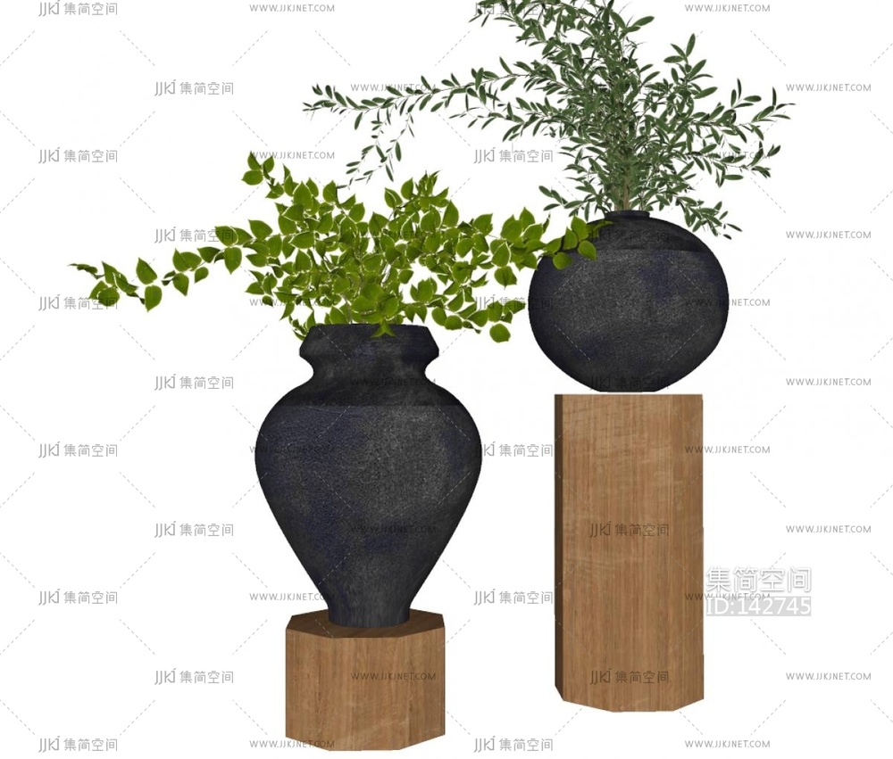 新中式中古花艺,陶罐花瓶SU模型su草图模型下载