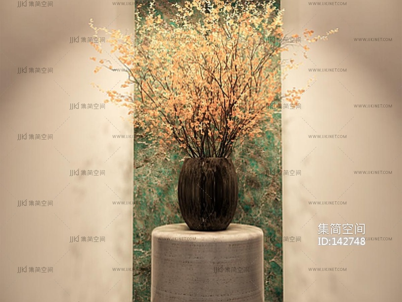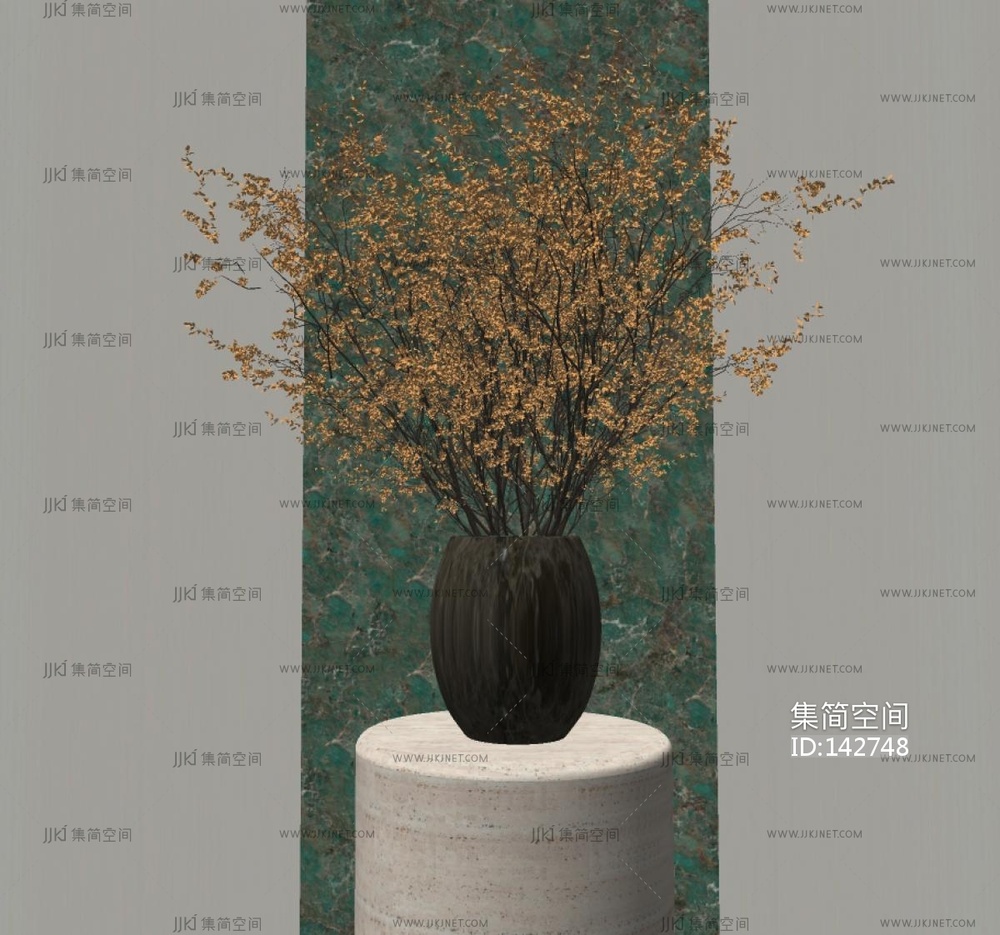 侘寂禅意花瓶花艺摆件SU模型 su草图模型下载 [模型ID:142748]