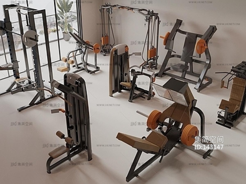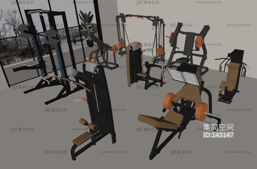 健身器材组合,哑铃,跑步机SU模型 su草图模型下载 [模型ID:143147]