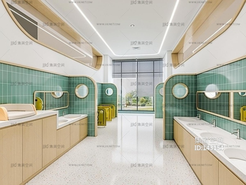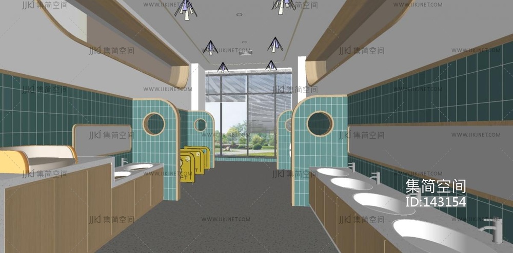 现代幼儿园卫生间台SU模型 su草图模型下载 [模型ID:143154]