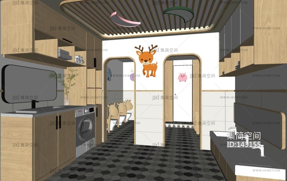 现代幼儿园卫生间SU模型 su草图模型下载 [模型ID:143155]