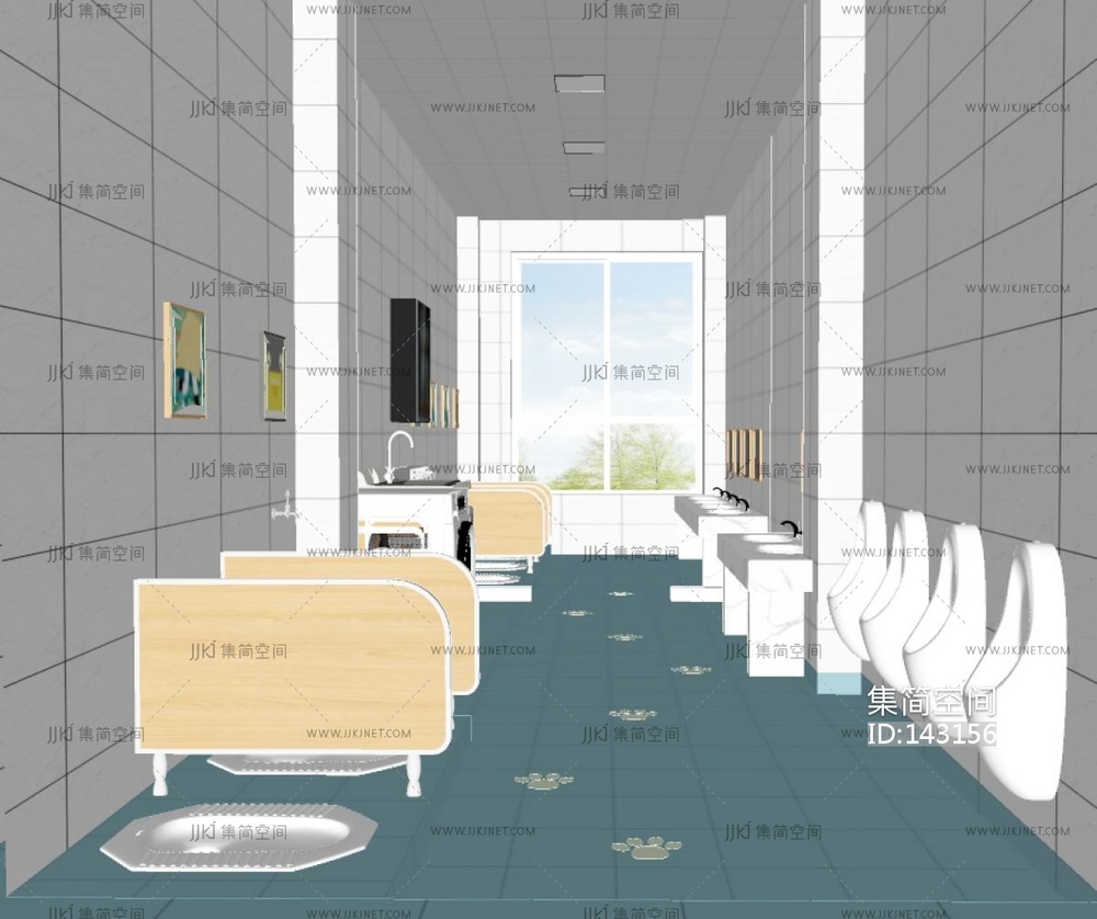 现代幼儿园卫生间SU模型 su草图模型下载 [模型ID:143156]