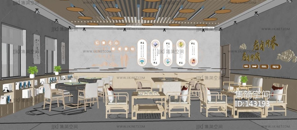 新中式老年活动室SU模型 su草图模型下载 [模型ID:143193]