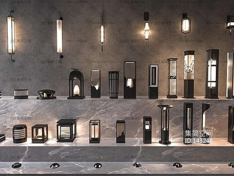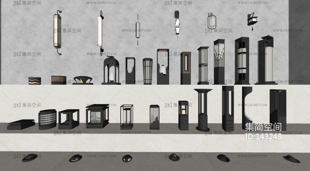 新中式小区景观灯组合SU模型 su草图模型下载 [模型ID:143248]