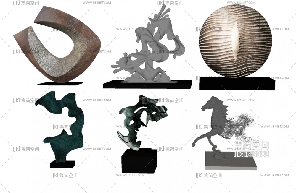 现代雕塑装置,铁艺摆件SU模型 su草图模型下载 [模型ID:143383]