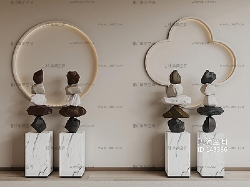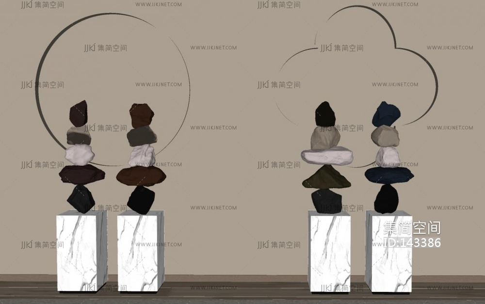现代石头雕塑摆件SU模型 su草图模型下载 [模型ID:143386]